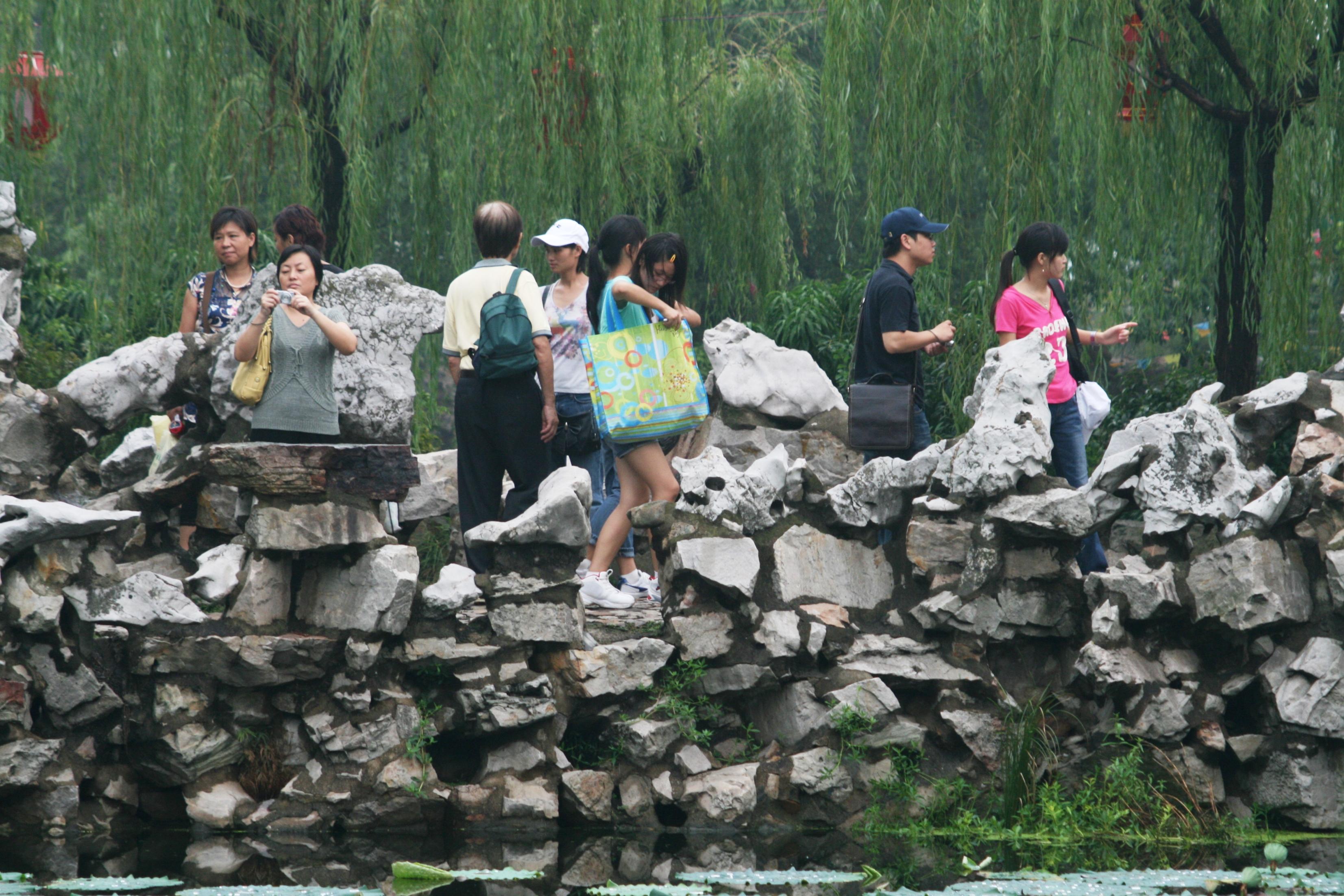 地元、中国の若い方達のグループのようです。池の周りを囲む石組越しの撮影でした。写真撮影をされる他のグループの方達の姿もありました。