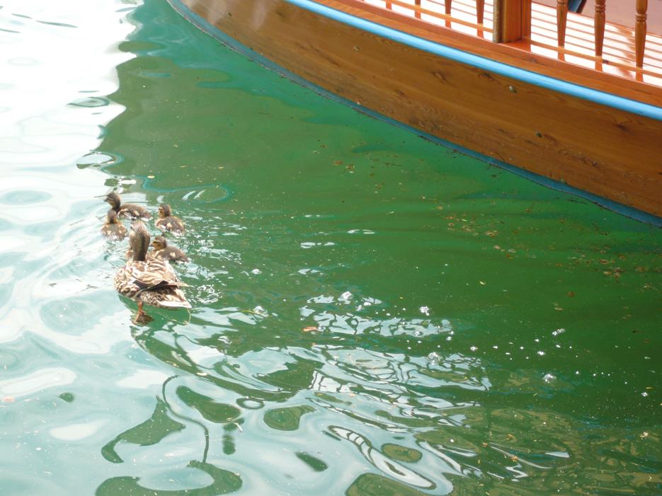 鴨ちゃんたちと遊びながら、でも時間だしと、最後は大急ぎでボート小屋につけると、係りの人は誰もいない。
