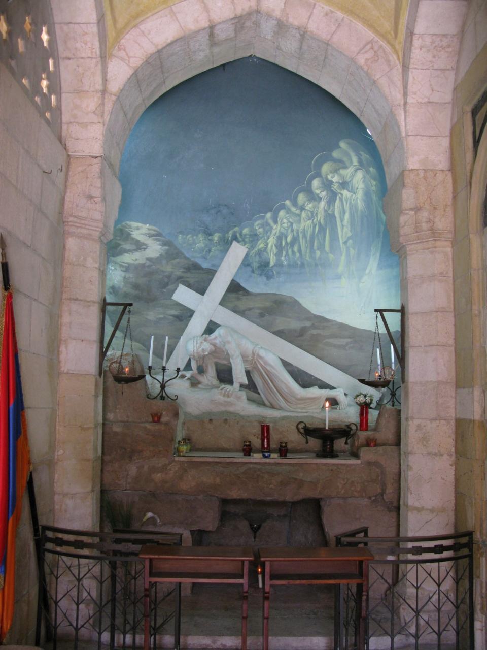 主の泣かれた教会より万国民の教会へ向かう道です。壁の頂上部にガラスの破片が埋め込まれていました。イスラエル流の防犯対策かな?
