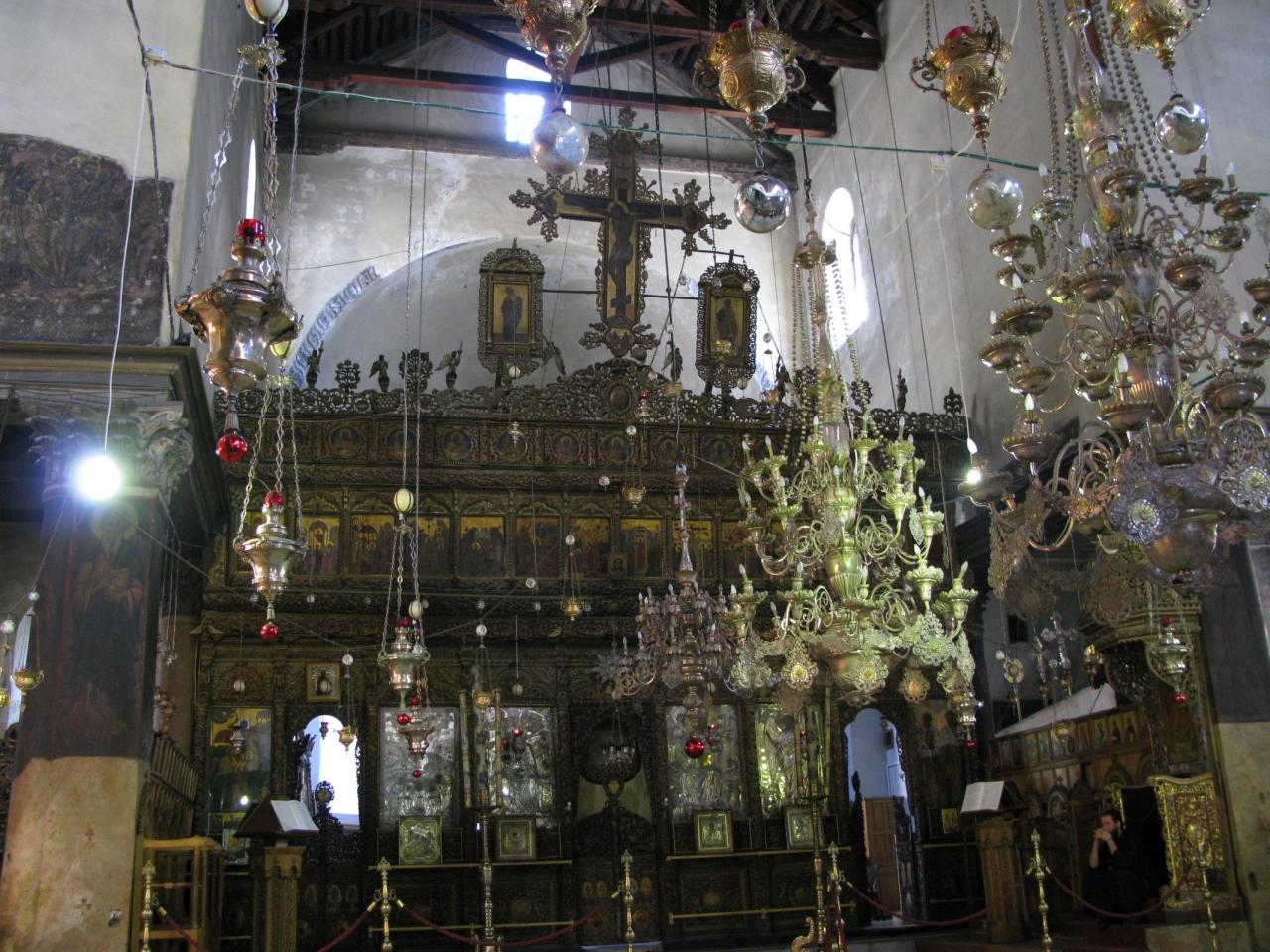 ベツレヘムは分離壁まで行き少し入って危険そうならすぐ帰ればいいかと思って行きました。ベツレヘムへはダマスカス門から少し東に行ったアラブバスのバスステーションより確か25番のバス(うる覚えですので違っている可能性があります)で向かいました。事前に確認した情報から分離壁の前の門で降ろされると思っていましたが、予想外に分離壁沿いを走っていたかと思えばいつの間にかノーチェックで分離壁を越えいきなりベツレヘムの中心街のはずれの道端で降ろされました(汗)。そこから1キロほど歩き生誕教会に向かいました。ベツレヘムの街は商店も多く結構にぎわっており危険は無い様に思えましたがパレスチナ警察が旧ソ連のAK47で警備しておりイスラエルの警察はおらず少々不安でした。外国人も繁華街を通ったにもかかわらず一人もすれ違わずに生誕教会にたどり着いてしまいました。生誕教会ではツアー客であふれており大型バスで生誕教会にくるみたいです。ベツレヘムの中でもここだけは別天地でした。ここではキリスト生誕の場所があるのですがあまりにも人が多かったためみずにでてしまいました。帰りは何とかバス停を見つけ同じ番号のバスで帰りましたが、事故の影響で大渋滞が発生しており行きは30分のところ帰りは2時間かかってしまい予定外の時間がかかってしまいました。