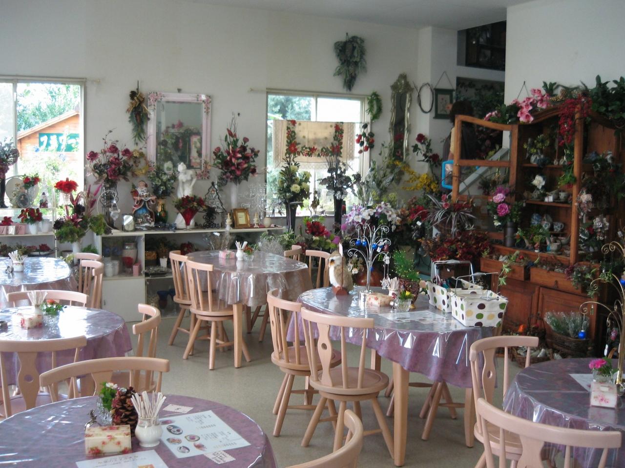奥にはステキな造花や花瓶があります。
