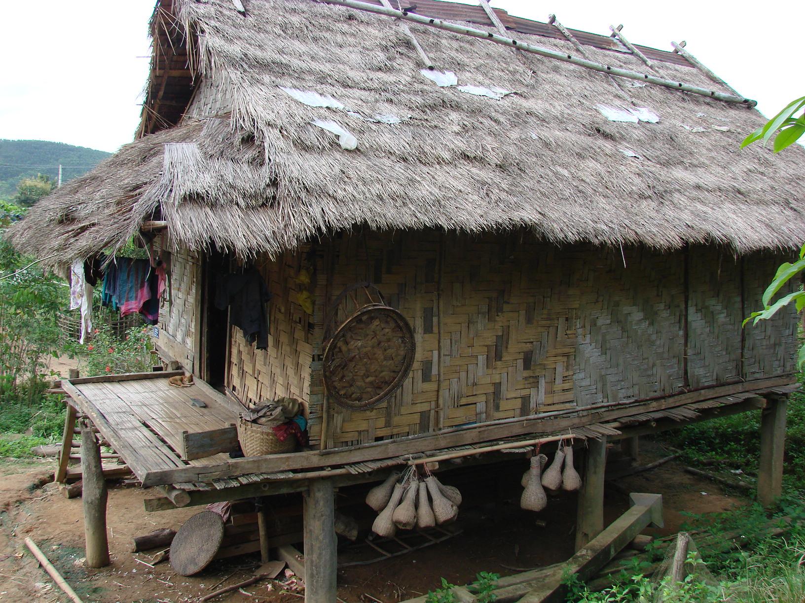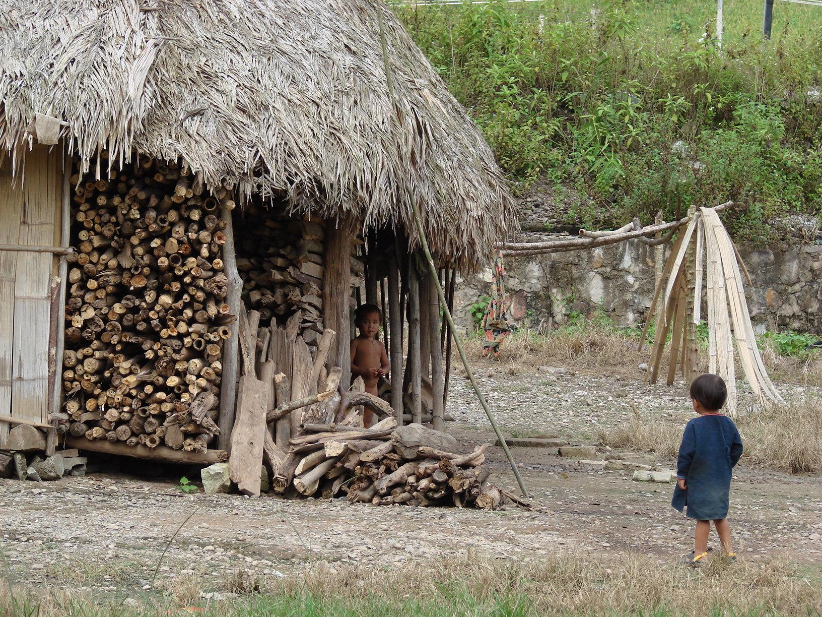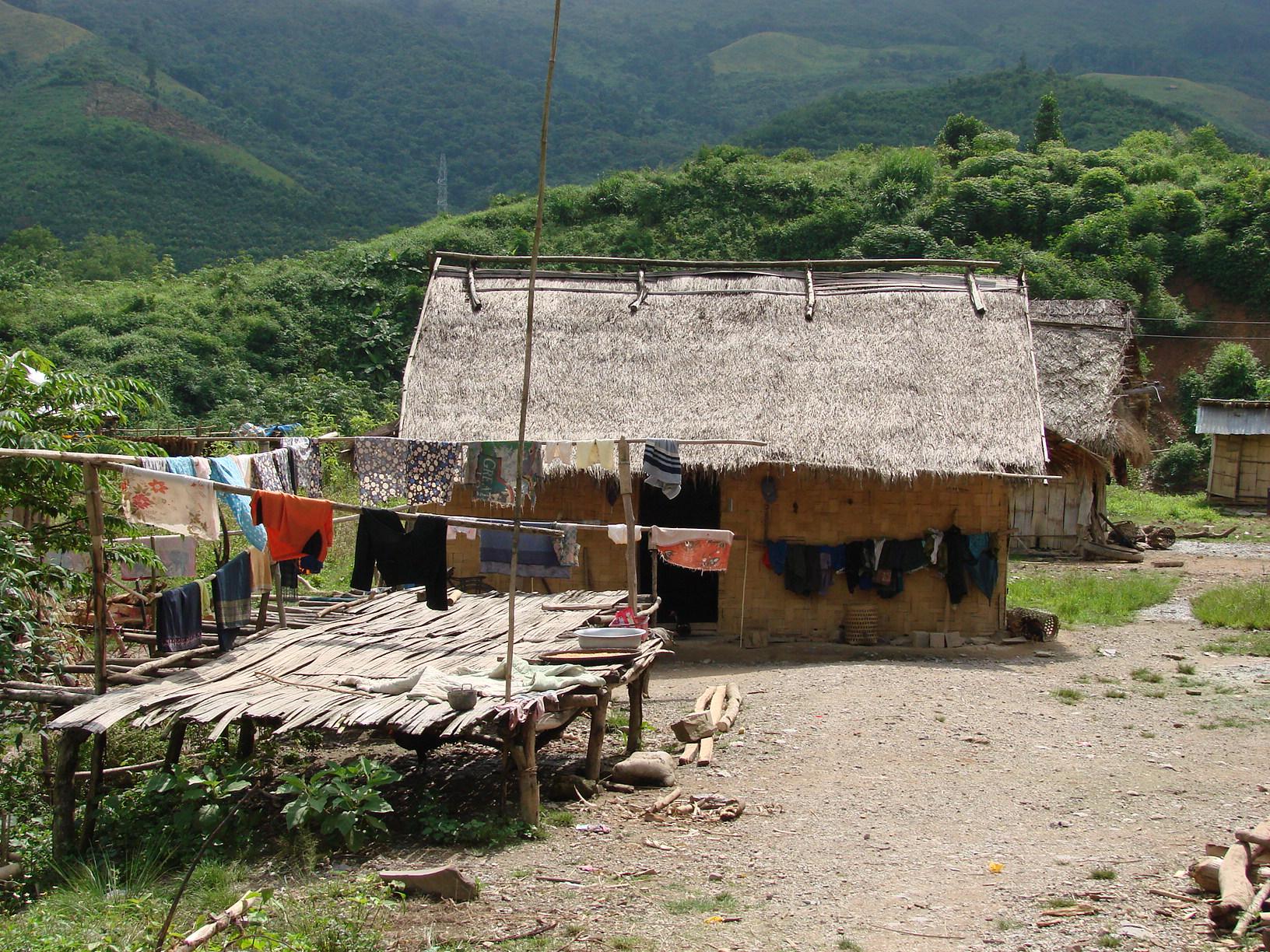この集落は少し裕福な感じだ、共同の庭で刈り入れしたモミを干している。