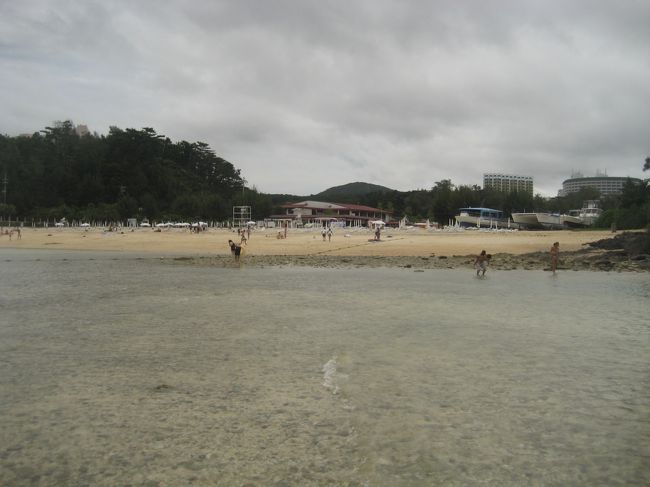 干潮時で目の前では泳げず、左側の岩場のほうにはけっこう人がいます。