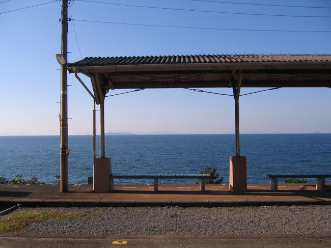 - 青い空と青い海、誰もいない駅のベンチが哀愁を漂わせて実に絵になります。