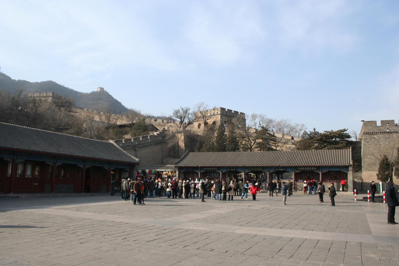 万里の長城の入り口です。こんなにたくさんの人で賑わっています。さぁ、今回は初めてのチャレンジ男坂に〜