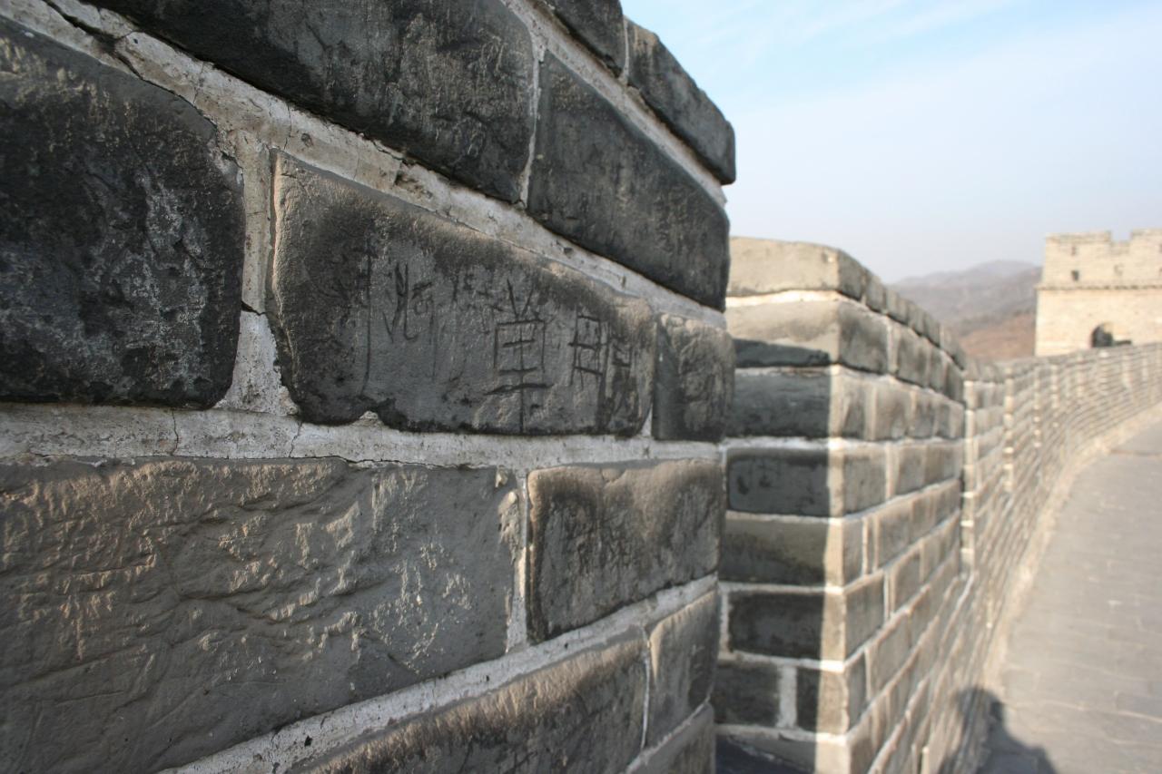 残念なことに世界遺産の壁にいたずら書きがありましたが、誰も訴えたりはしない。何故って、ここは大陸の中国。小さいことに目くじらをたてたりはしない大らかさがある。というより、無関心なのか・・・