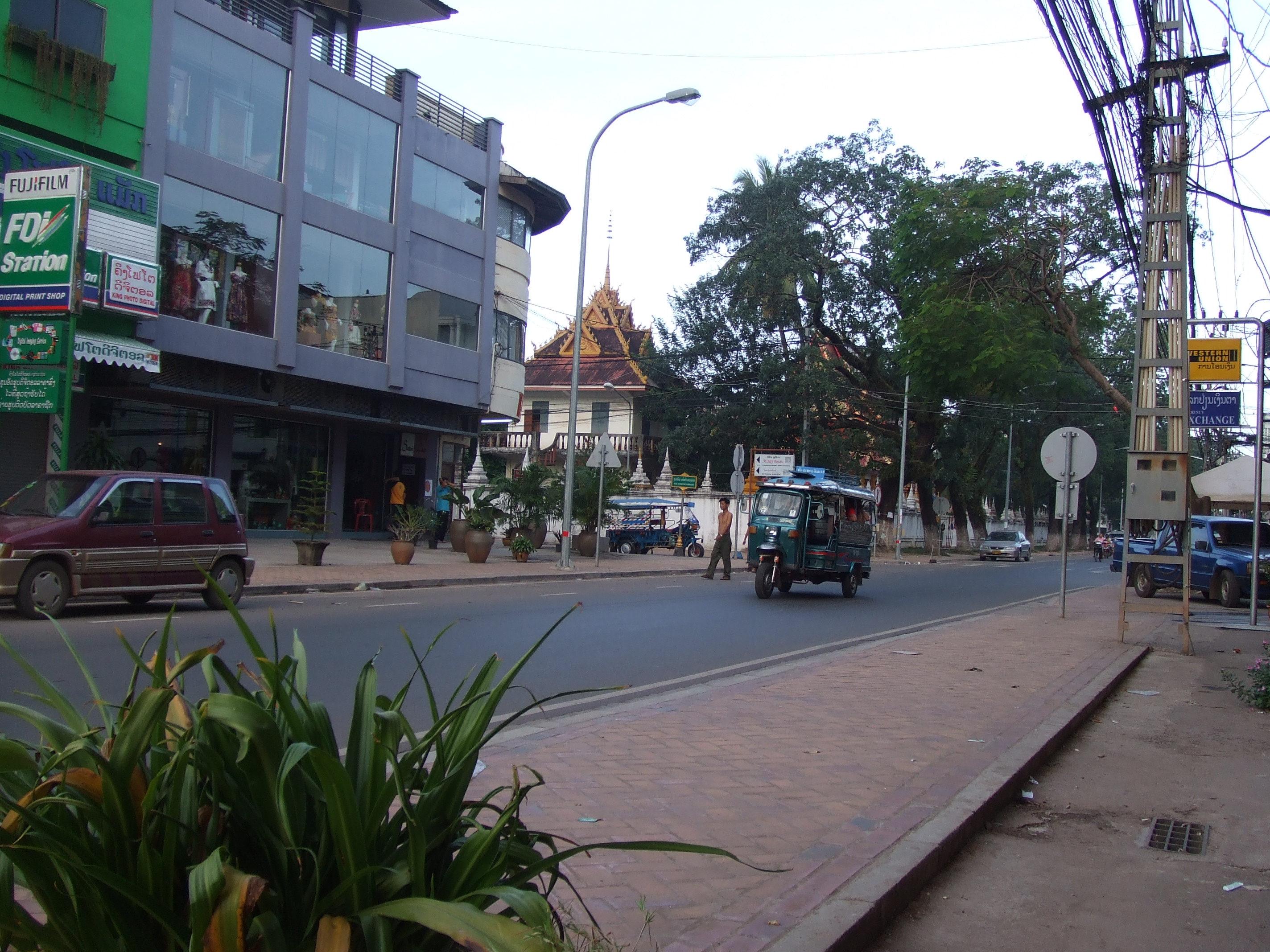 18時ころ、ようやくヴィエンチャンのバスステーションに到着!2人のマイクとトゥクトゥクをシェアし、中心地(ナンプー前)までやってきました。もうあたりは暗くなってきてたので宿を探し始めました。