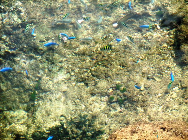 ゴツゴツした岩を歩いていくと岩と岩の間に熱帯魚が気持ちよさそうに泳いでいます。