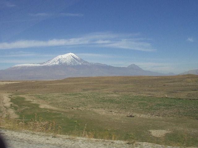 前方にいよいよはっきりとアララト山(アール・ダーゥ=山)が見えてきました -