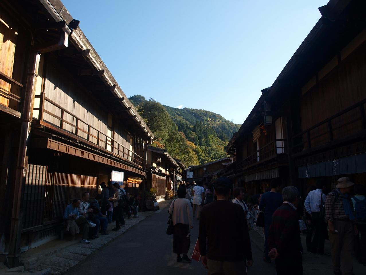 日暮れの早さに季節を感じます。2階部分を残して街道はすっかり影になってしまいました。