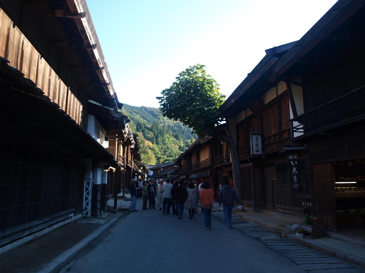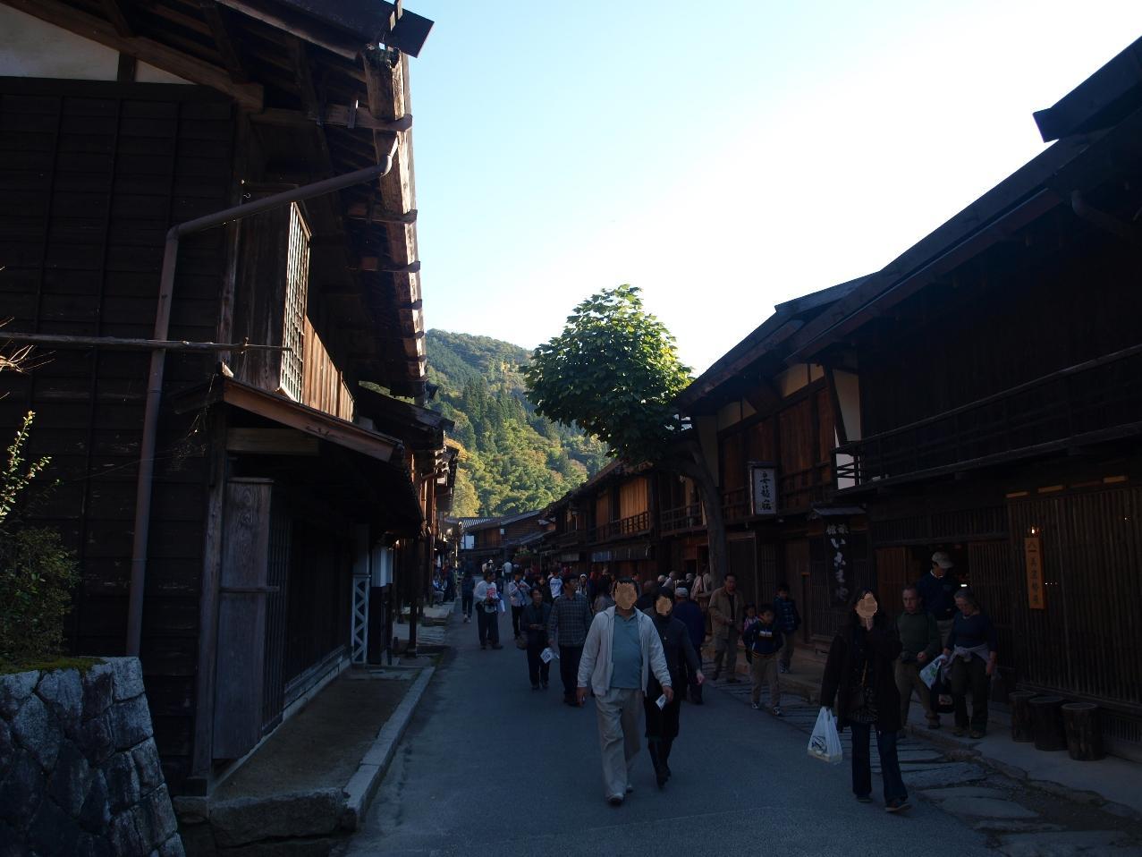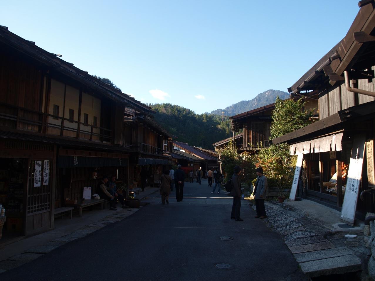このあたりが妻籠宿の北の端、これから街道を南に歩きます。 -