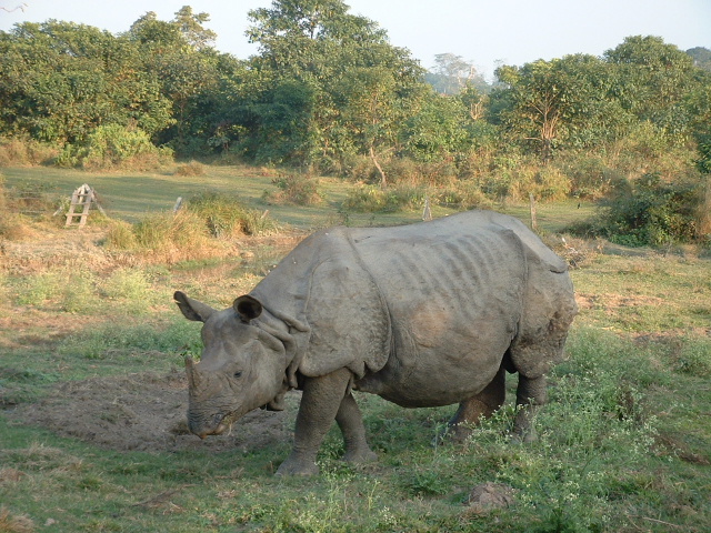 カヌーを降りて、すぐ、思いもかけず、サイに遭遇しました。 -