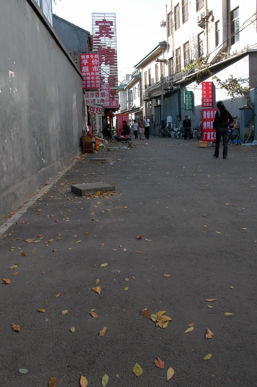 胡同に入ると、風で追いやられてきた木の葉の溜まり場になっていました。
