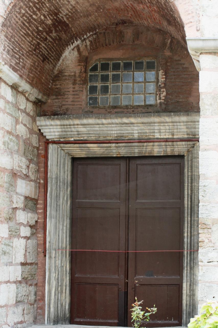 『現在のアヤソフィア(その3)』:美しい文様を持った大理石のようです。左右の文様が対称でした。推測ですが、大理石を薄く切った時に生じた、表と裏の関係のように見えました。聖堂の建設の時に、全国各地から美しい大理石が集められたようです。大理石には、しばしば独特の模様や色ムラがあり、『マーブル模様』と呼ばれています。(同上)