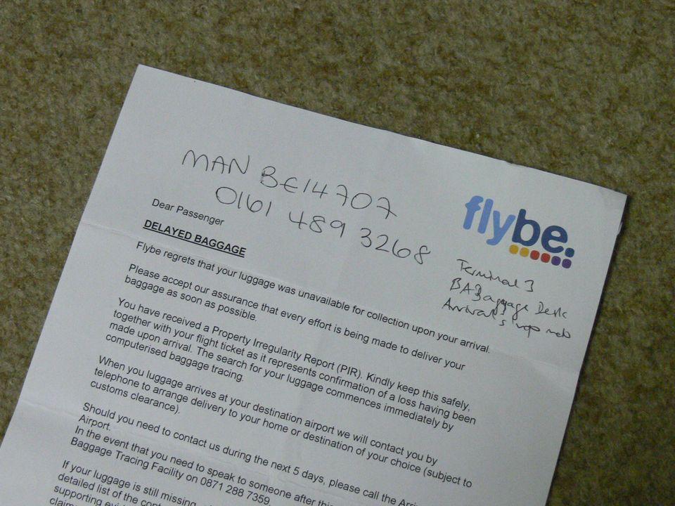 マンチェスタ−へ着いてみたら荷物が出てこない。フランクフルトは荷物のデリバリがパンク状態でflybeのような格安航空の荷物はしょっちゅう積み残しがあるようである。写真はflybeが発行した荷物の遅延証明。最後に今回のトラブルで気を悪くせず再びflybeを御利用頂きたいとあった。