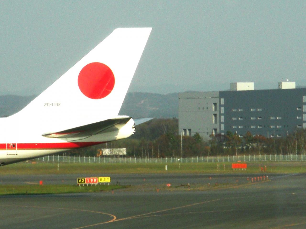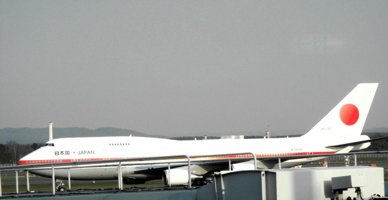 11番スポットで待っていましたら、珍しい物を見つけました。尾翼に 日の丸 日本政府専用機です。 もともとこれが普段いるのが新千歳空港ですから まれに見る事が出来ますが この日は離陸していくこの飛行機を見たのは初めてです。 と言ってもこれに乗る機会は無いでしょうね!!