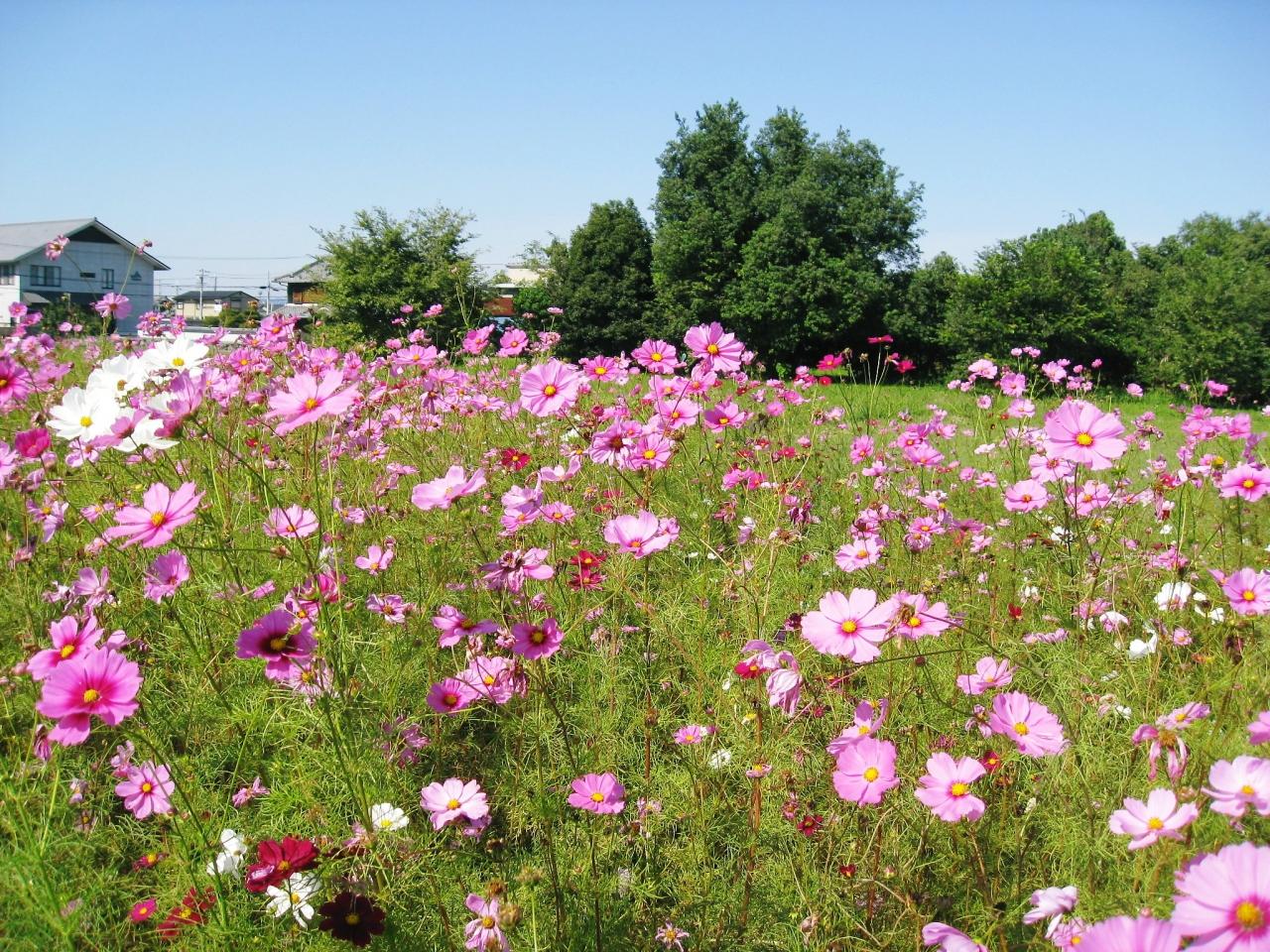 一面にコスモスが広がります。