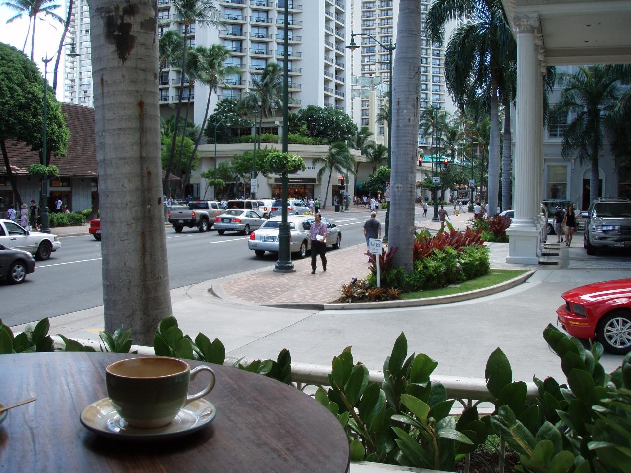1度ホテルに荷物を置いてから、ブラブラお散歩。お気に入りのモアナサーフライダー内のホノルルコーヒカンパニーでコーヒーブレイク。