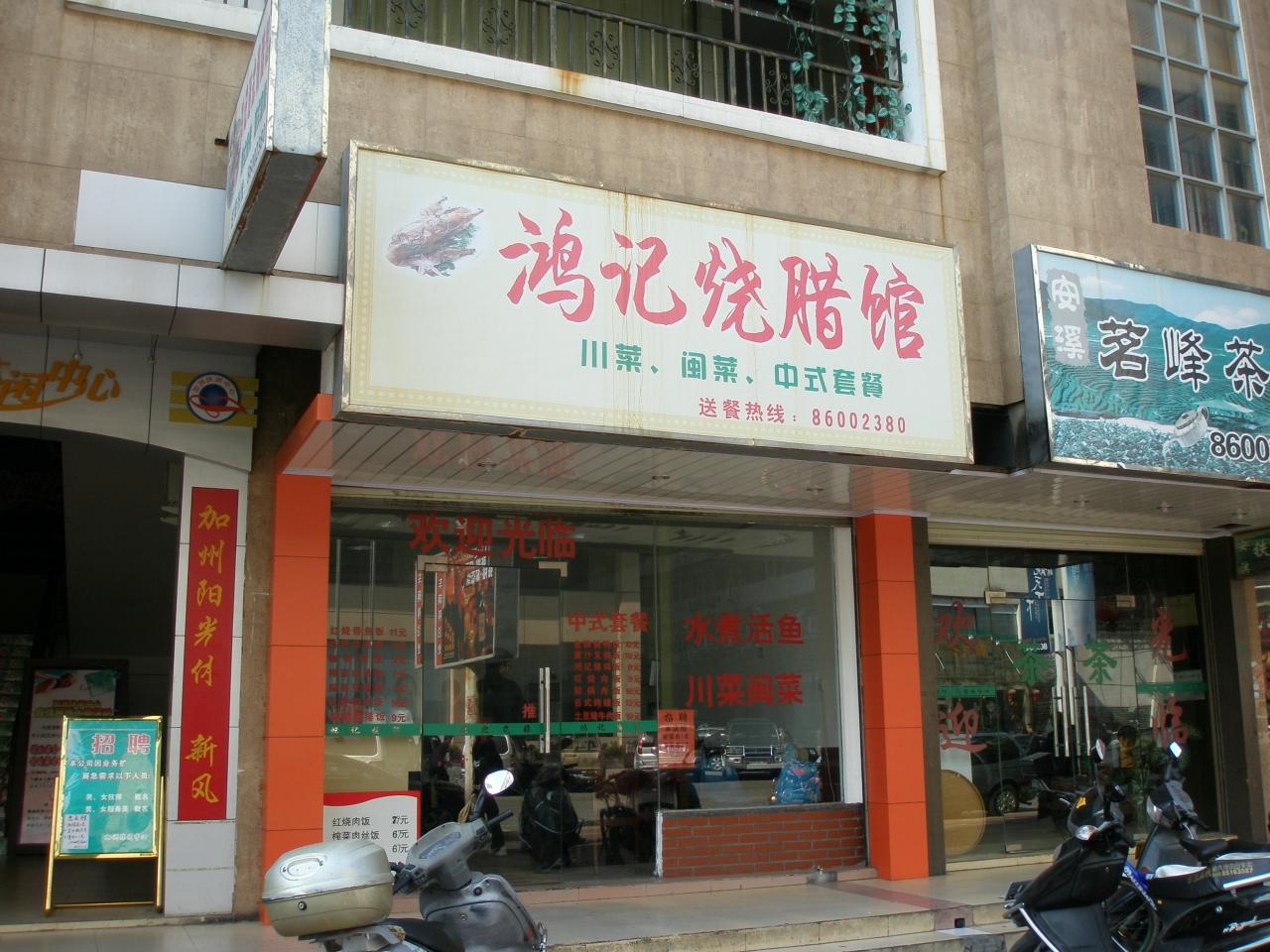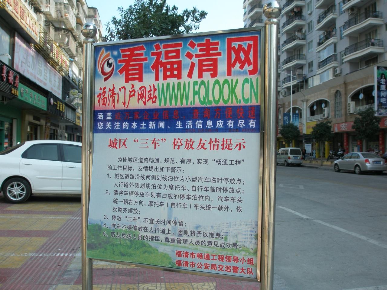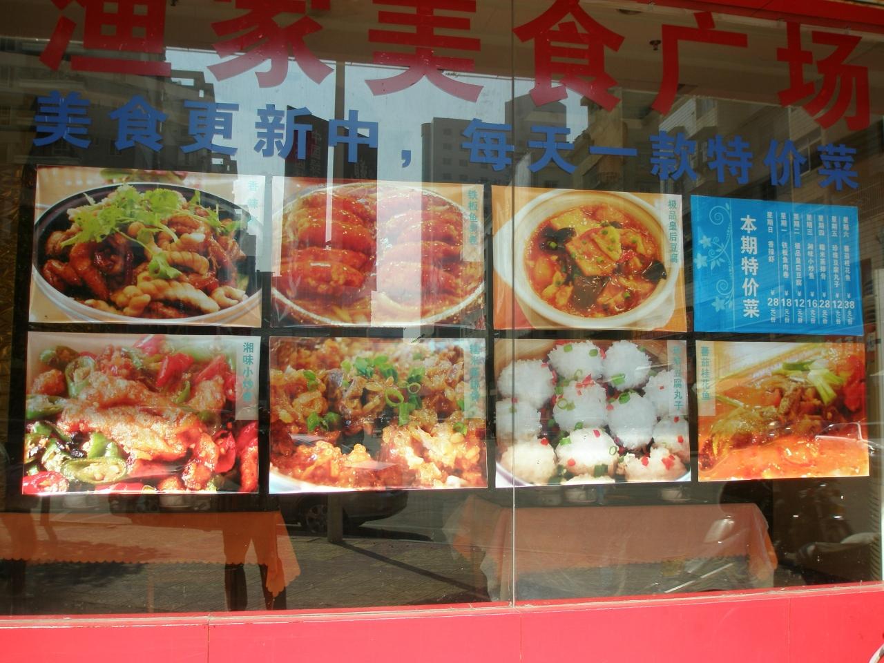 新市街地には昼時に到着。お腹がすいていたのでまずは食堂探しです。写真は福唐路にあった看板。