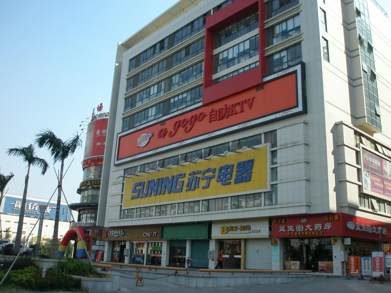 中国の住宅地ではスーパーはもちろん家電量販店や家具屋さんよく見かけます。