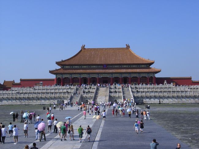 上に見える門が保和殿。真ん中に見える岩は1枚岩のレリーフ。かなりの大きさでしたので1枚岩というのは驚きでした。もっと驚いたことに、皇帝はこのレリーフの上を神輿に乗って進んだそうです。