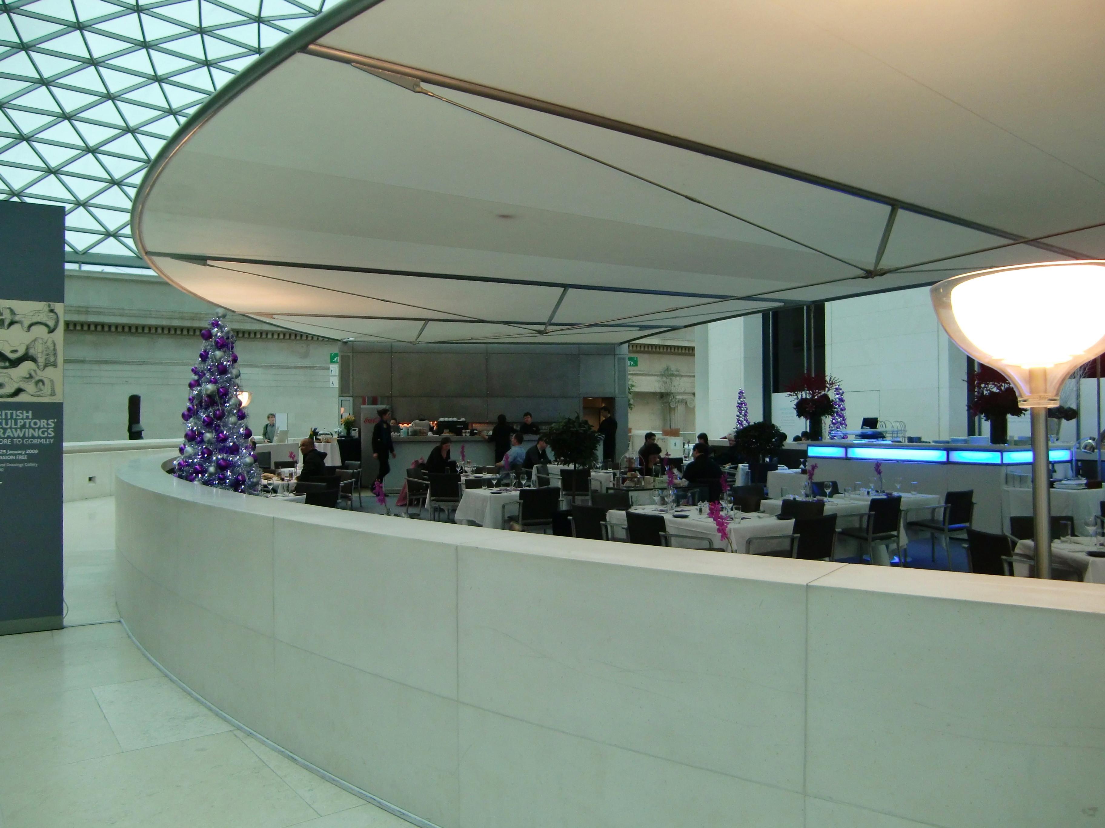 正面入り口から中へ入ると、外観の雰囲気とは全く違う近代的な広い空間が広がっています。中はグレート・コートと呼ばれるガラス張りの天井のおかげで、雨にもかかわらず自然の光が入ってきて、とても明るく感じました。まずインフォメーションで館内の案内図を貰って、どんなルートで見て回るのが効率的なのか、Mさんと相談します。