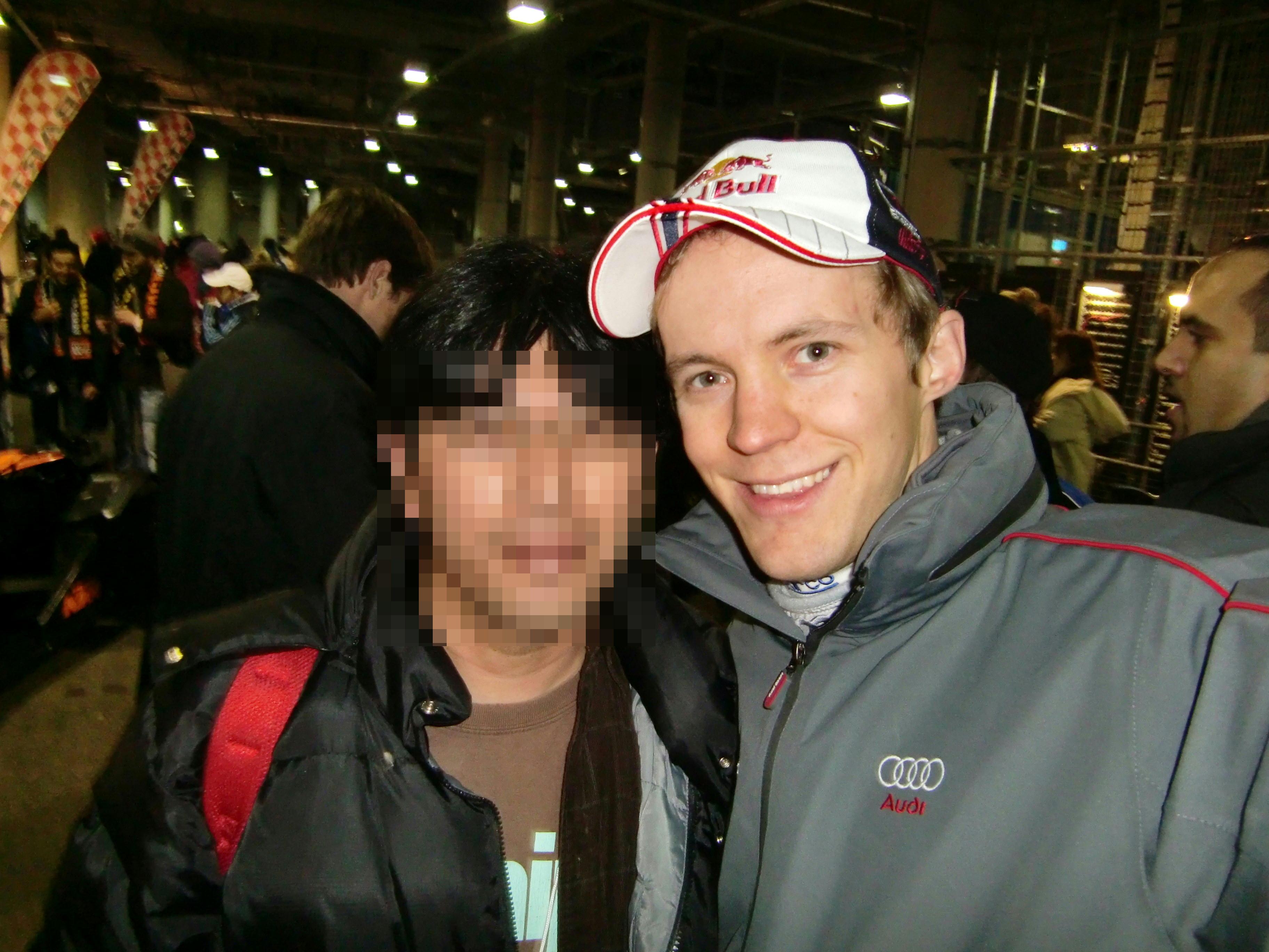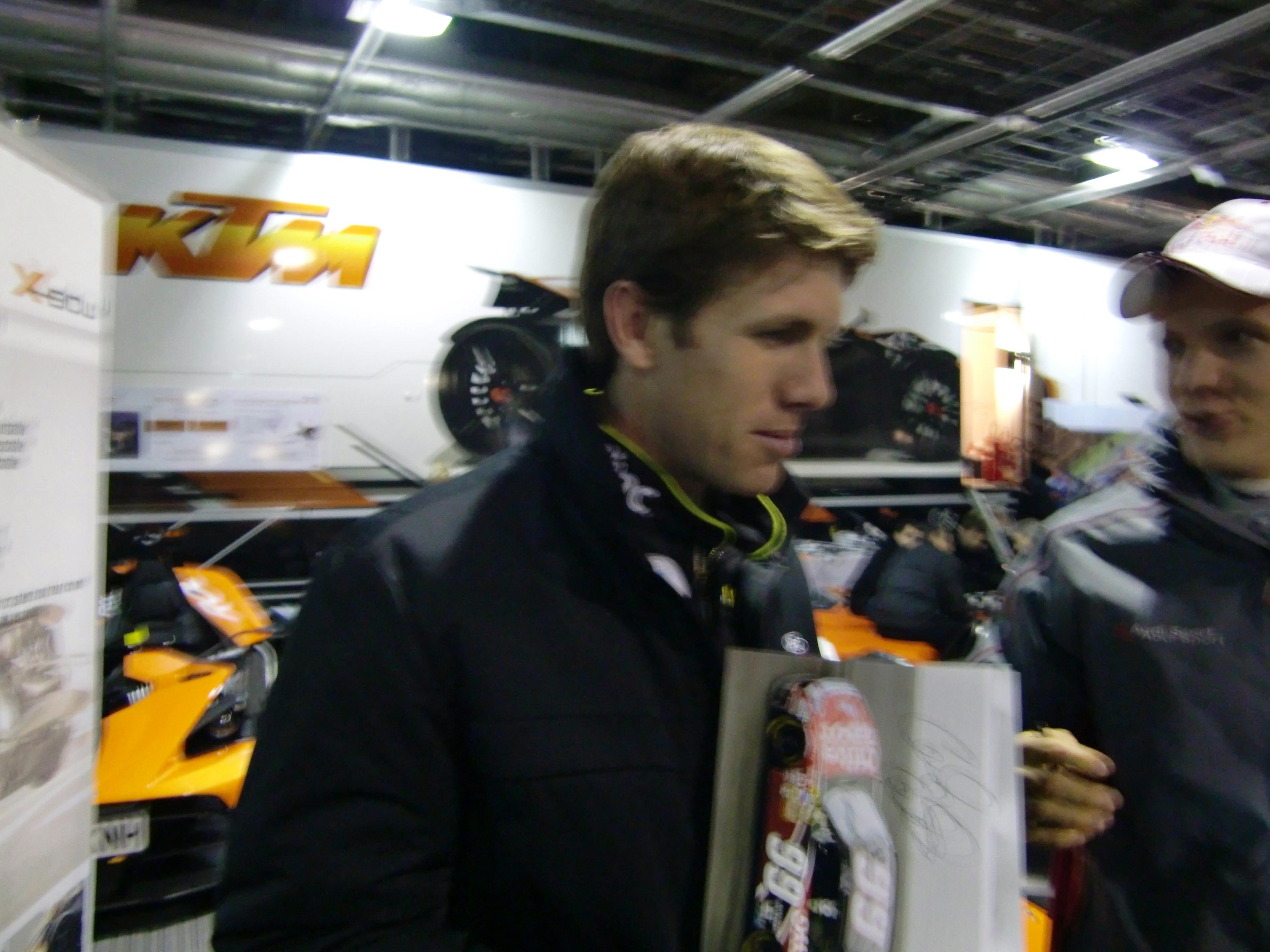 すでにパドックから出て行く人もいましたが、パドック内をうろうろしていると、エクストロームを発見したので、サインを貰って一緒に写真を撮りました。ちなみにこの写真はエクストローム自らがカメラを持ってシャッターを押してくれました。