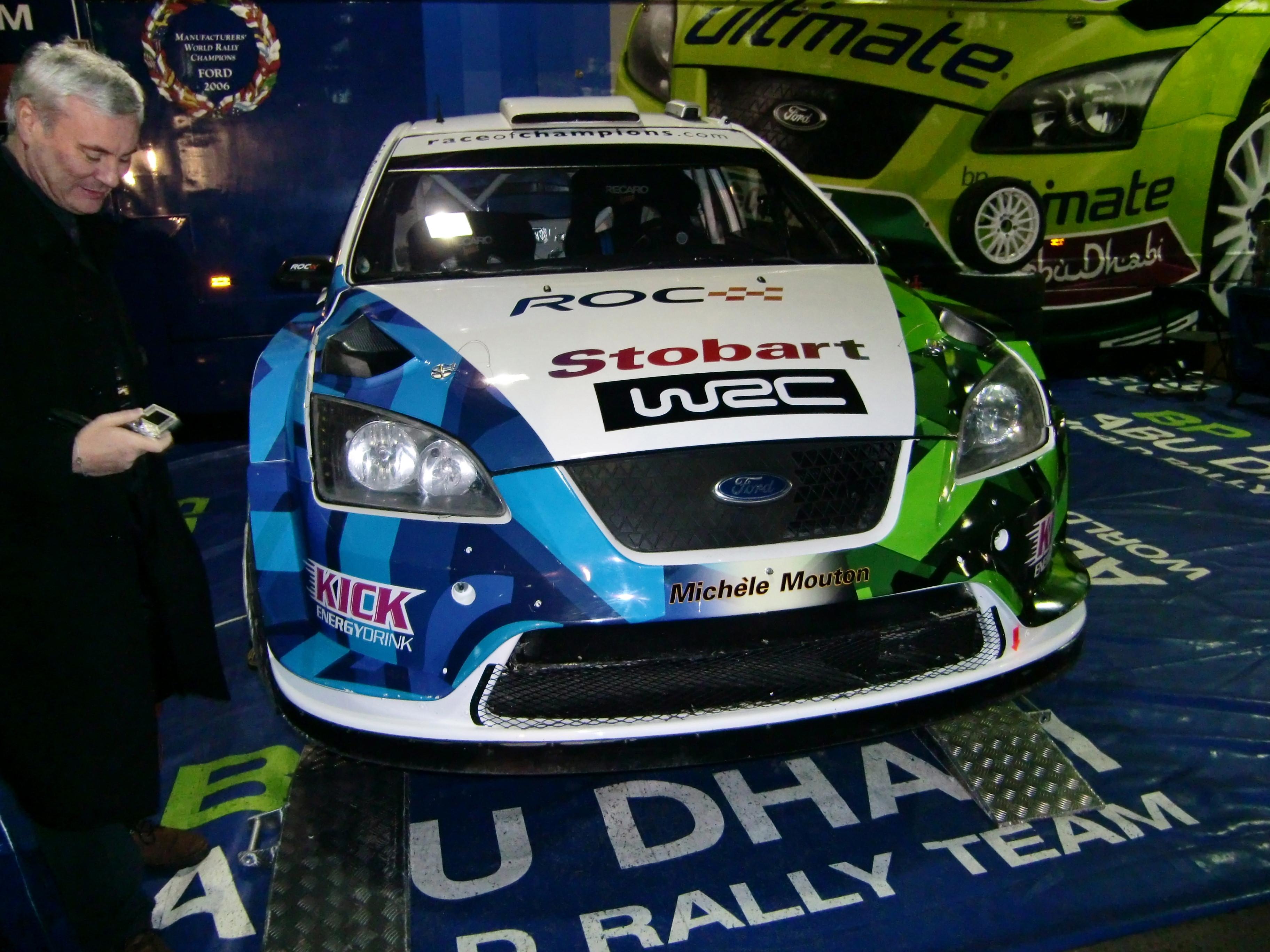 一応、ハミルトンの写真も用意していましたが、エキシビションでの出場なので、さすがに姿は現しませんでした。再びパドックエリアに戻り、展示されているマシンの写真を撮ります。これは2008年のストバートVK・Mスポーツ・フォード・ラリー・チームのWRCマシンです。