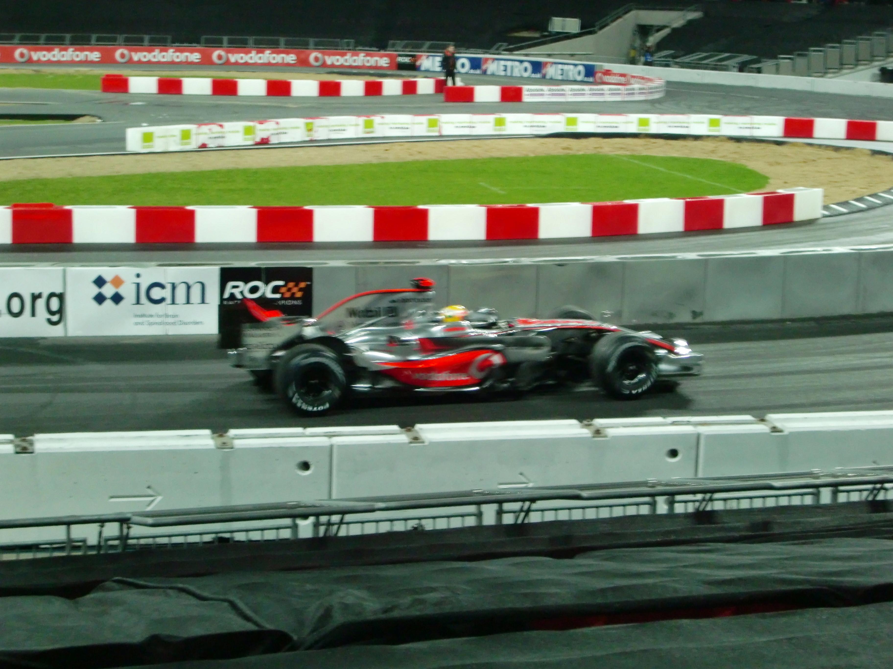 エキシビションの時間帯に最初に出てきたのはMP4-23をドライブするハミルトンです。F1マシンを走らせるには役不足な場所なので、本来の走りを見ることはで来ませんでしたが、やはり生で聞くF1マシンのエンジン音は良いですね。
