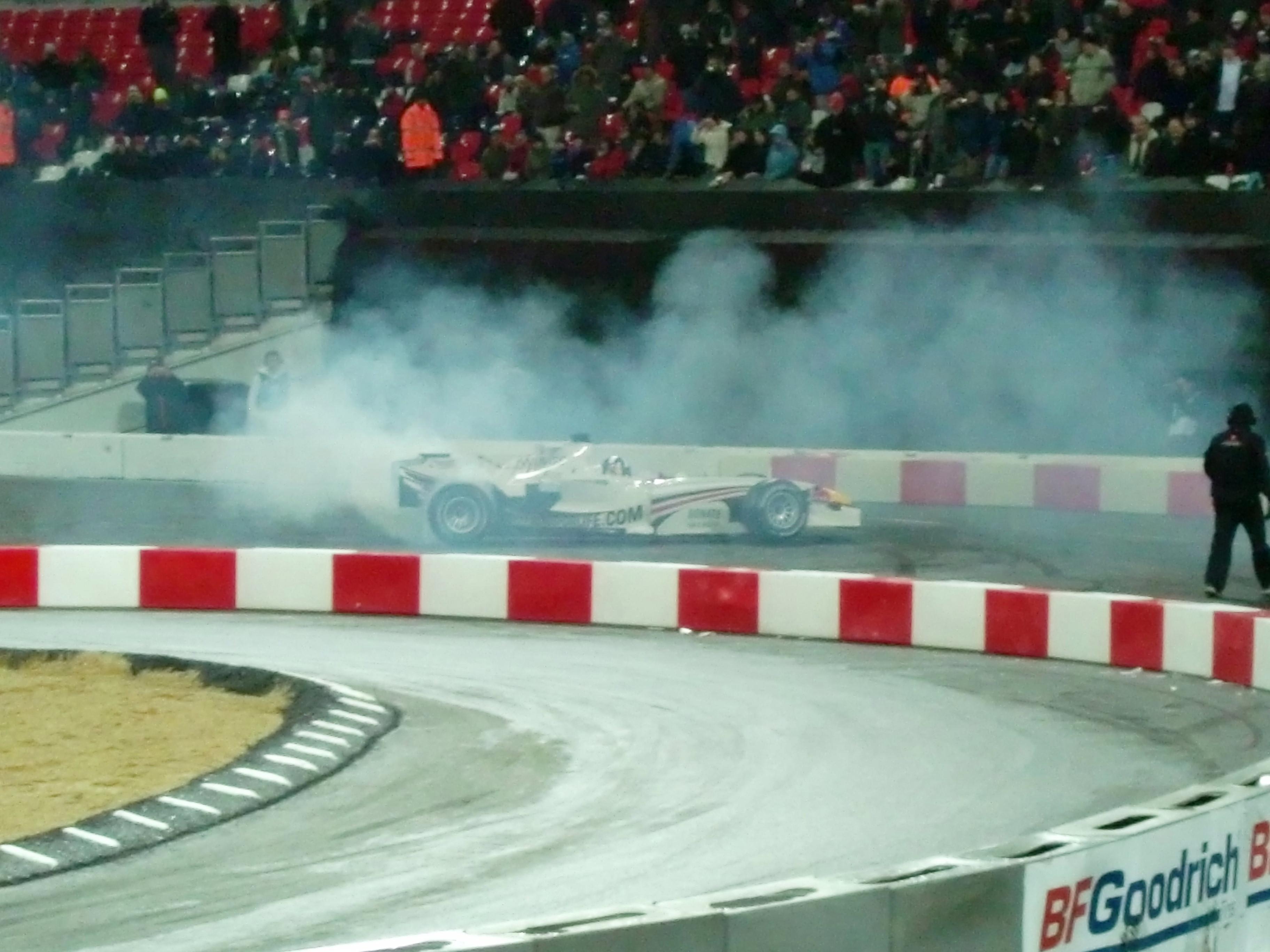 ハミルトンの次はクルサードが今シーズン最終戦のブラジルGPの時のカラーリングのマシンでデモ走行を行いました。このマシンはパドックビジットの時にも展示されていましたが、今年のモデルであるRB4ではなく、兄弟チームであるトロロッソの2006年モデル、STR1だと思われます。