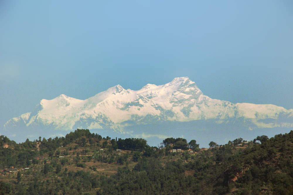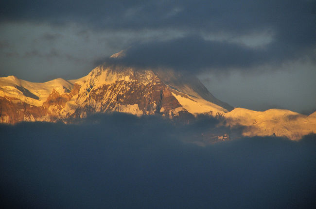 よく見える峠で・・ 画面一番右の山がヒマルチュリ(7893m) 左がマナスル(8156m) -