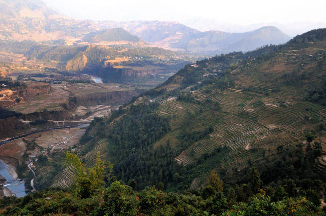 ナラヤニ河沿いの道 昨日まではネパール南部のダライ平野を西へ進んできましたが、今日は北へ(ヒマラヤ方面)登って行きます。