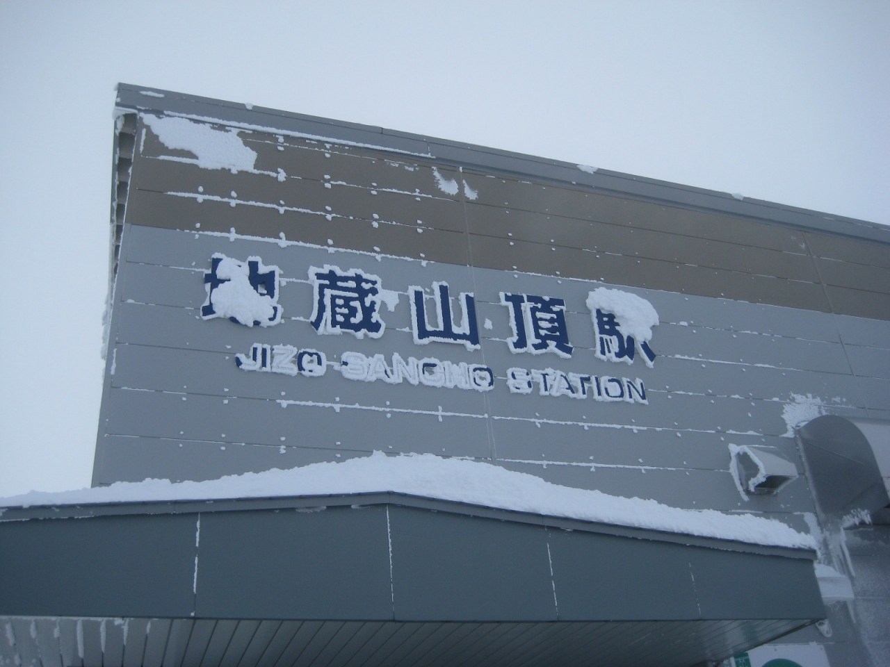 樹氷高原駅は、地上と頂上との中間地点です。しかし、高いです。ため息が出るほど美しい景色にうっとりしてしまいます。この中には、昔、今のようにロープウェイがなかった頃の交通手段である「馬ゾリ」が展示されています。かつては二時間以上もかけて馬が人を引いていたんですね〜。