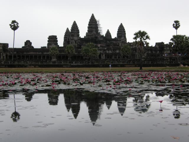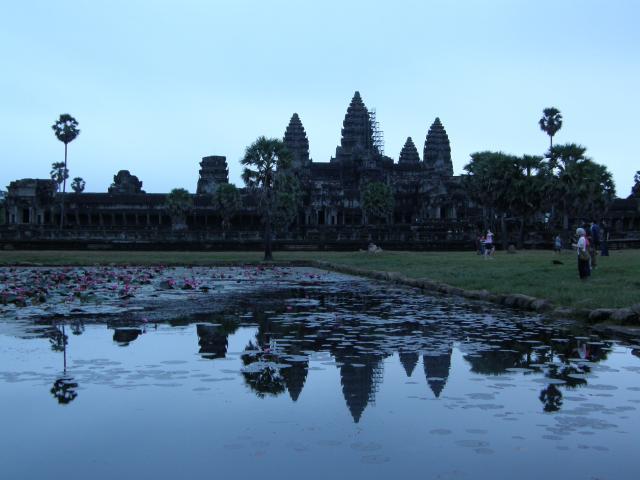 まだ薄暗い中のアンコールワット。初日の出は拝めず!残念!!