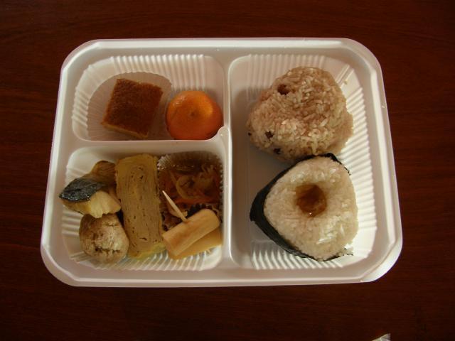 お昼はお弁当。カンボジアのご飯のオニギリはいまいち。。。