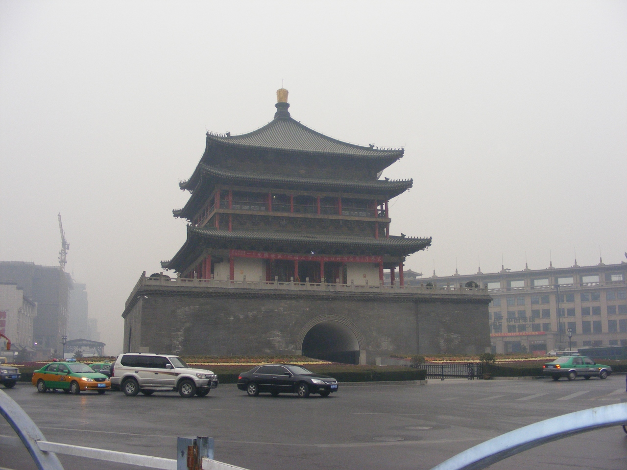 霞んで正面に見えるのは 南門です 鐘楼から1キロ弱で歩いて行けます