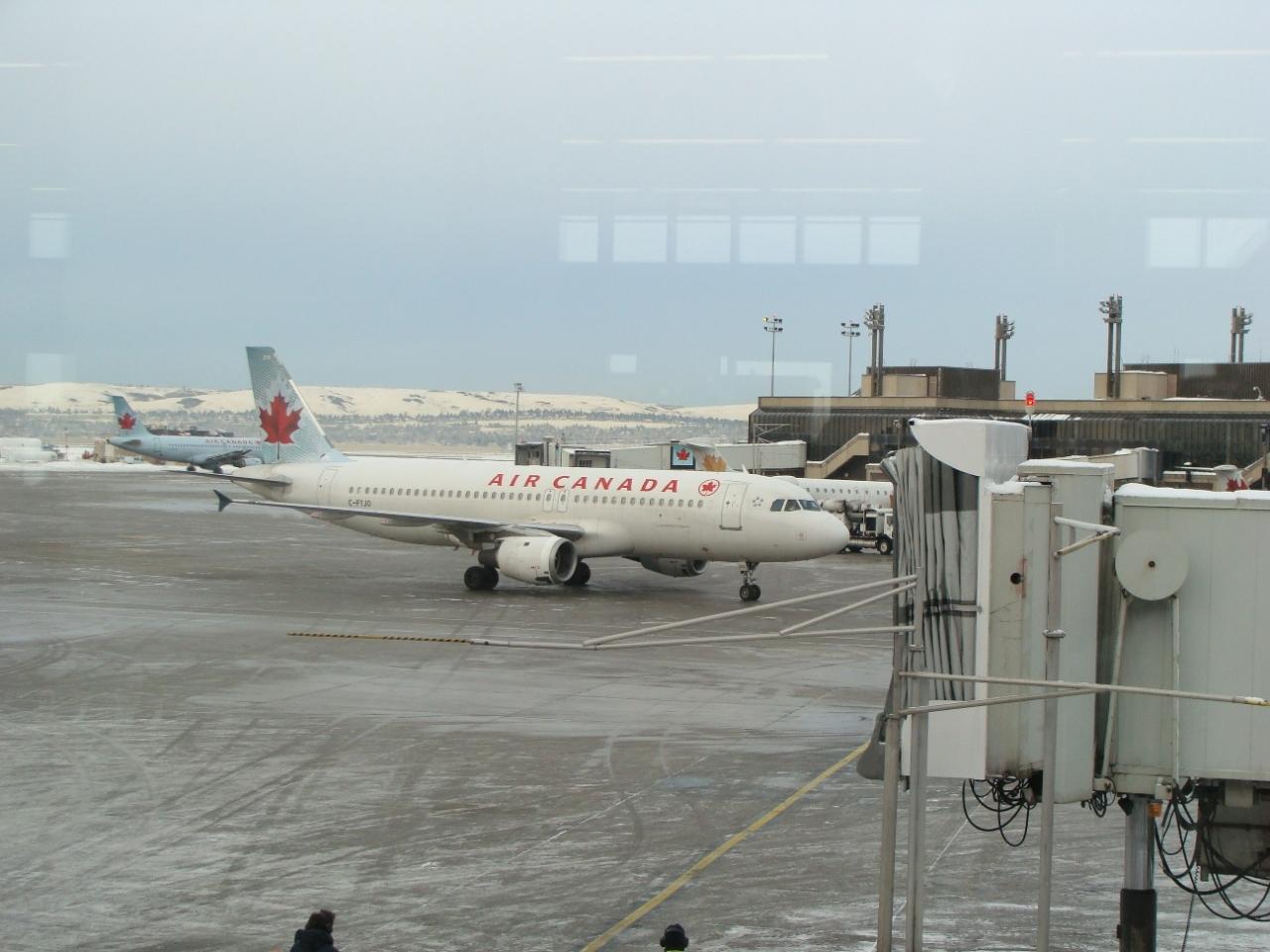 トロント便も遅延していたため搭乗待ち、スポットでの主翼の凍結防止作業等での遅れが発生