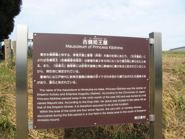 1972年に発見された極彩色の壁画で有名な「高松塚古墳」ですが、石室の解体工事のため古墳そのものは見学できないですし、周辺が公園になっていて、はっきりとはどこかわかりませんでした。。。