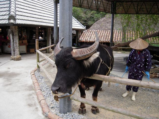 昭和初期まで、このように牛や馬に砂糖車を引かせてつくっていたようです。 -