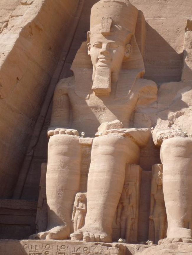 空がぬけるように青く、アブシンベル神殿はその鮮やかな色を突き切るようにどっしりと建っていました。期待以上に素敵でした。何よりも内部のレリーフの美しさに感動しました。ツアーの人達がすべて外でガイドさんの説明を聞いていたので、神殿の内部は貸切状態。本当に静かで厳粛な雰囲気がありました。この神殿を、ダムの底に沈めたくないと思った人たちの気持ちが良く理解できました。
