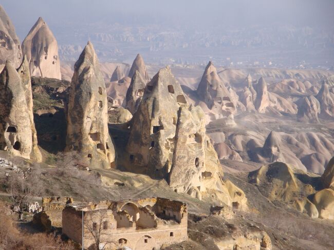 不思議の国、カッパドキア。ここは町全体がまるでテーマパークみたい。昨日はここまで遠い道のりだったけど夜に着いて正解、朝からこの景色を眺められ幸せ。