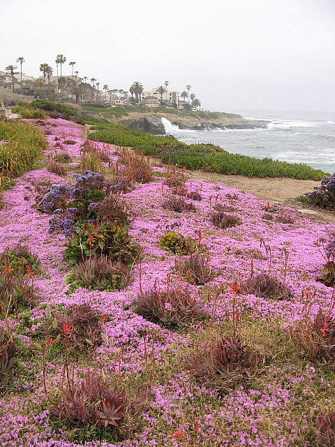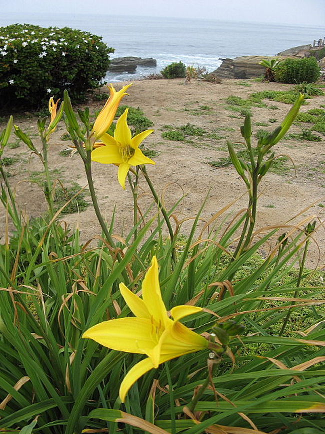 2007年GW.ラ ホヤ(La Jolla)の海岸沿いには散歩道があり、残念ながらお天気は良くなく、霞んでいましたが、海岸の景色やたくさんの花を眺めながら、早朝散歩をしました。観光客も少なく、さわやかな散歩になりました。