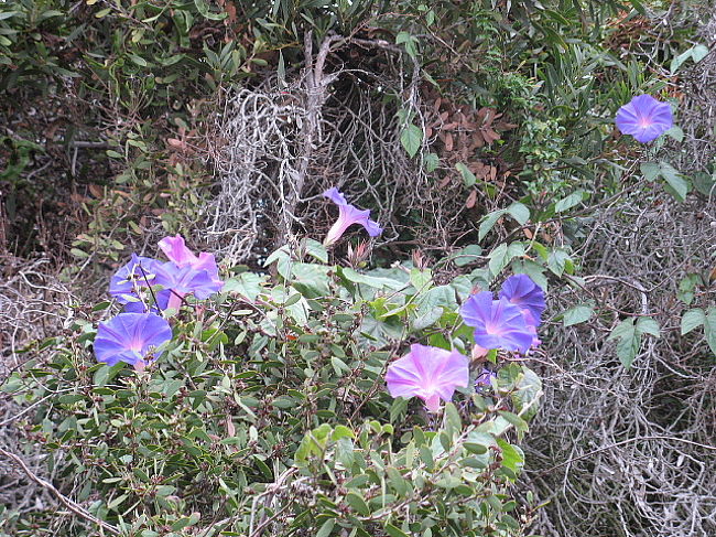 サンディエゴの北1時間位のラ・ホヤ(La Jolla)美しい海岸線と高級別荘地のイメージの町です。その切り立った断崖の海岸線にお花の散歩道を見つけました!紫のおおきな花の木のトンネルを抜けると。。。