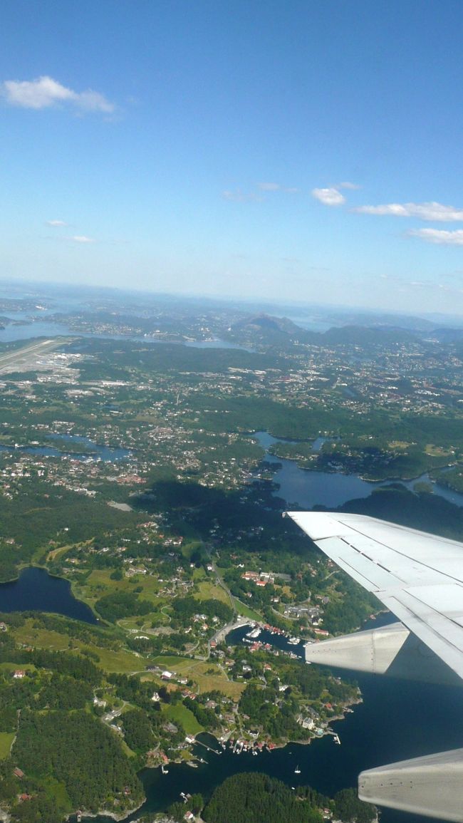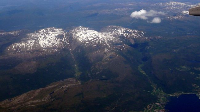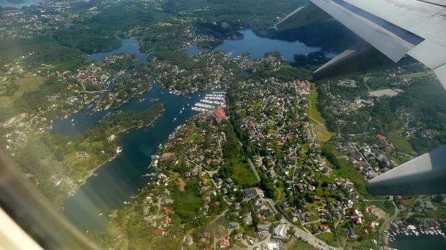 1時間遅れで出発の苛立ちも、オスロまでの上空からのフィヨルドのパノラマを眺めている内に霧散し、50分の飛行時間は瞬く間に過ぎ去った。
