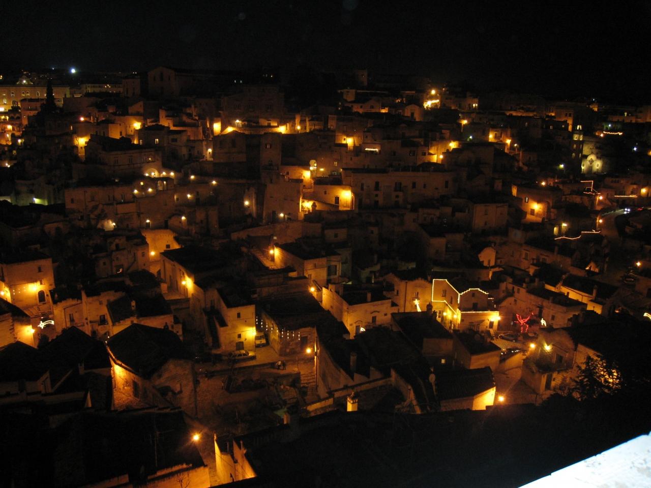 ちょうど太陽が照らす前のマテーラ。 -