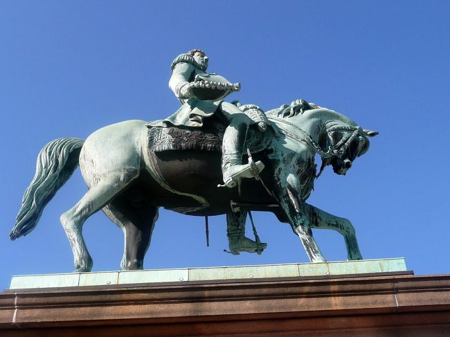 カール・ヨハンス14世像の像が、この王に因んで名付けられた道路に沿って、中央駅に向って、大聖堂の搭が見える街を見下ろしている姿。