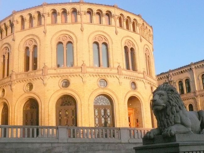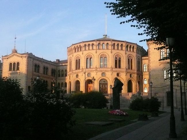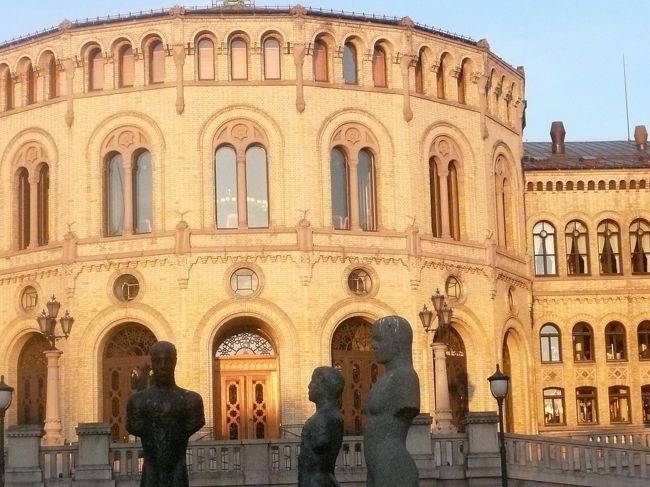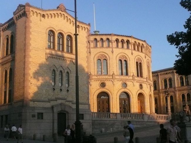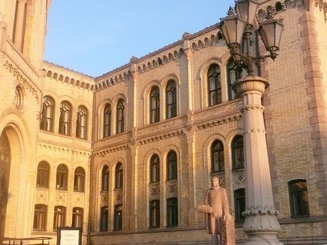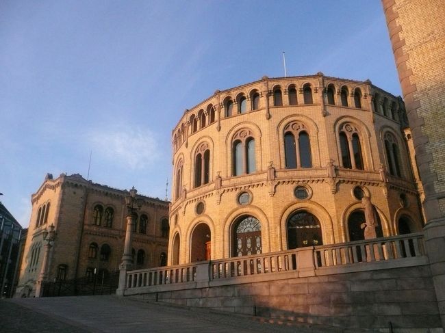 スカンジナビア旅情?:41オスロ市街散策:夕日を浴びた国会議事堂