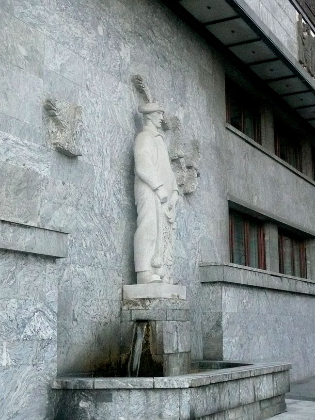 国会議事堂の脇の道を南に進み、赤レンガ風の壁の建物を抜けると、幾つかの彫像と噴水のある広場に出る。