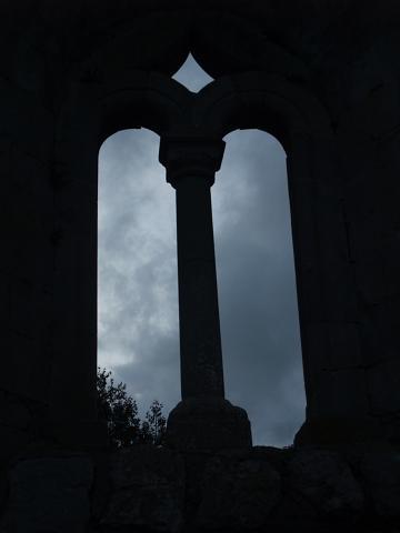 修道院跡の2階部分から若い男女の嬌声が聞こえたと思ったら、4人の男女がビールの空き缶を蹴りながら、階段を降りてきた。