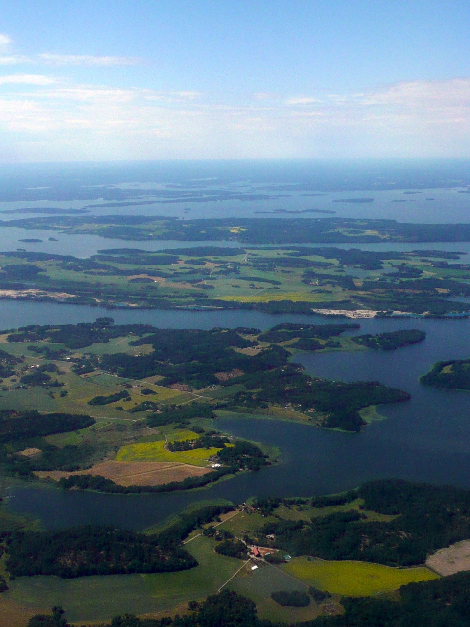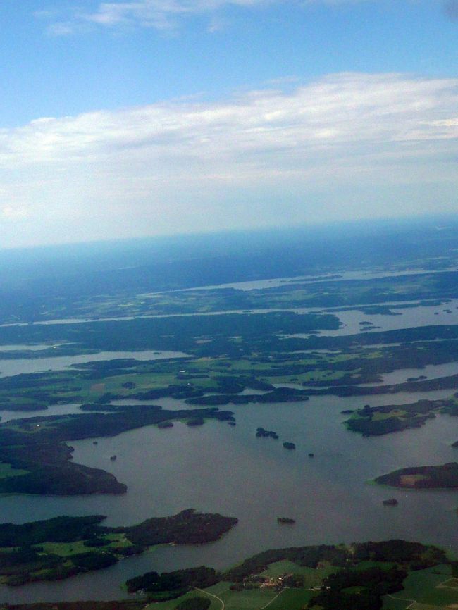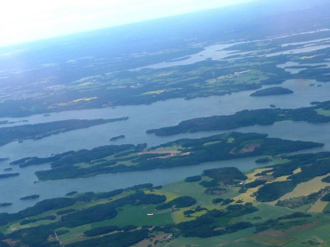 ストックホルム空港まで1時間余り、空からの眺めは、森と湖とフィヨルドが織り成す地帯がほぼ切れることな続いた。